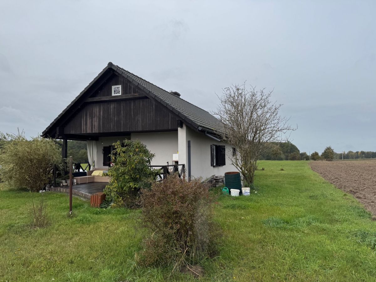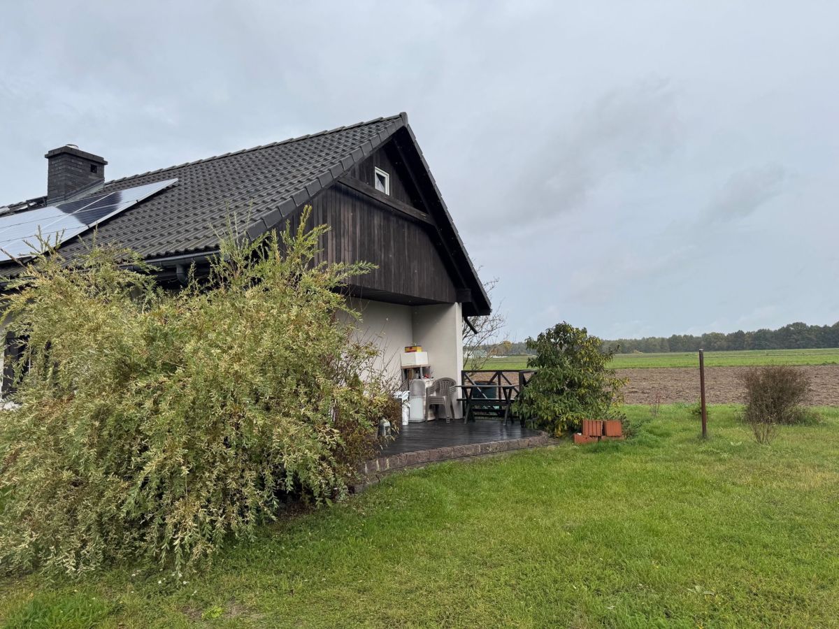 - wolnostojący budynek z funkcją mieszkalną (35m2) - salonik z kuchnią, sypialnia, łazienka. Wybudowany w technologii szkieletowej drewnianej