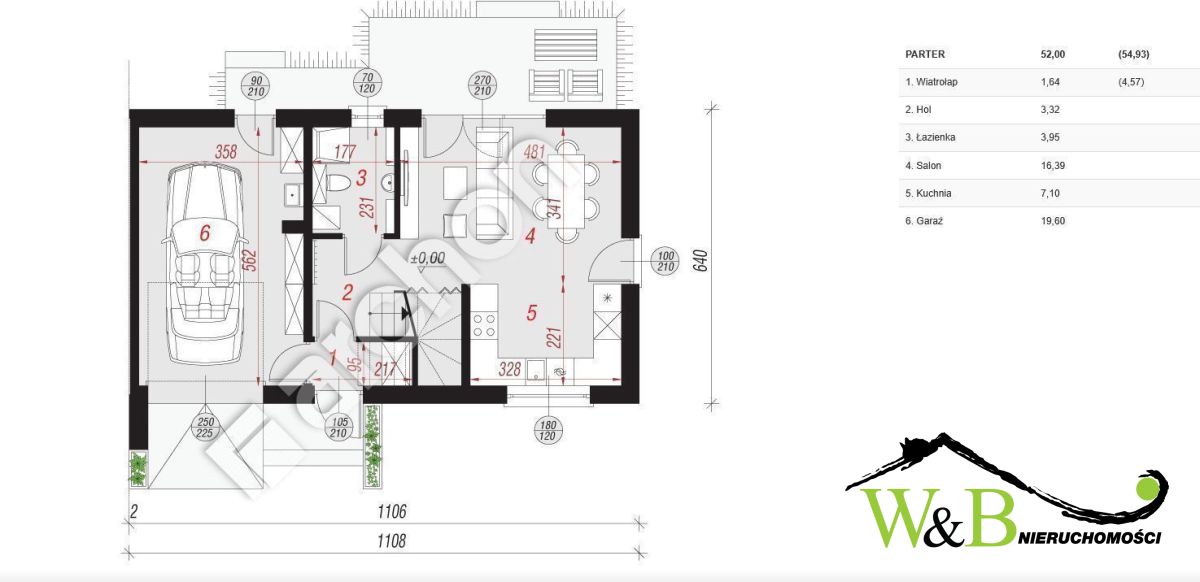 - na parterze salon połączony z kuchnią i jadalnią, łazienka z prysznicem, wiatrołap, garaż