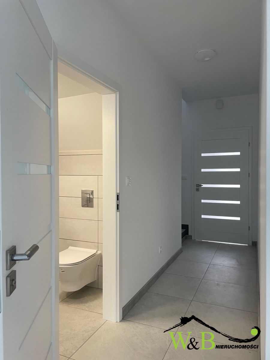 Funkcjonalny rozkład przestrzenny mieszkania.Na parter składają się salon z aneksem kuchennym oraz wyjściem na taras, wiatrołap oraz wc.Na piętrze znajdują się trzy sypialnie, garderoba, łazienka oraz pomieszczenie gospodarcze. W bryle budynku garaż.
