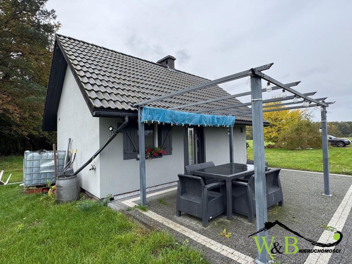 - wolnostojący budynek z funkcją mieszkalną (35m2) - salonik z kuchnią, sypialnia, łazienka. Wybudowany w technologii szkieletowej drewnianej