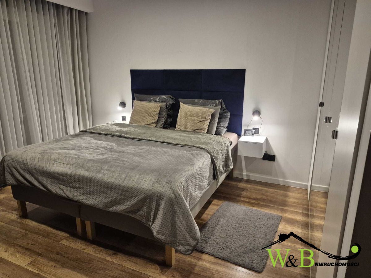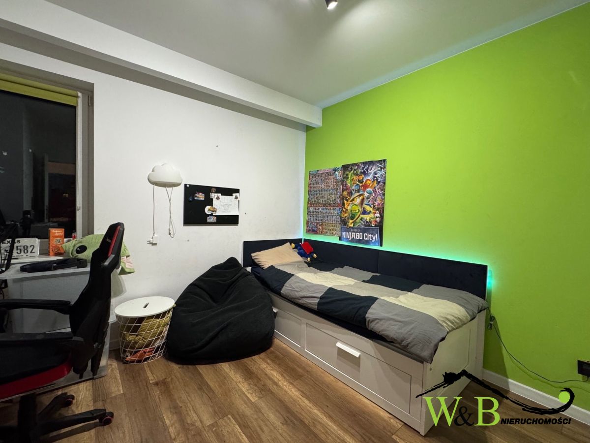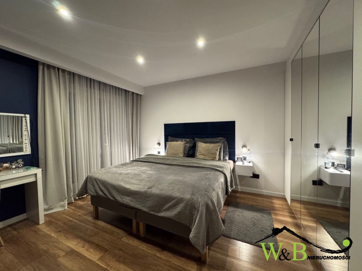 - 4 pełnowymiarowe sypialni. Główna sypialnia wyposażona w zabudowaną szafę