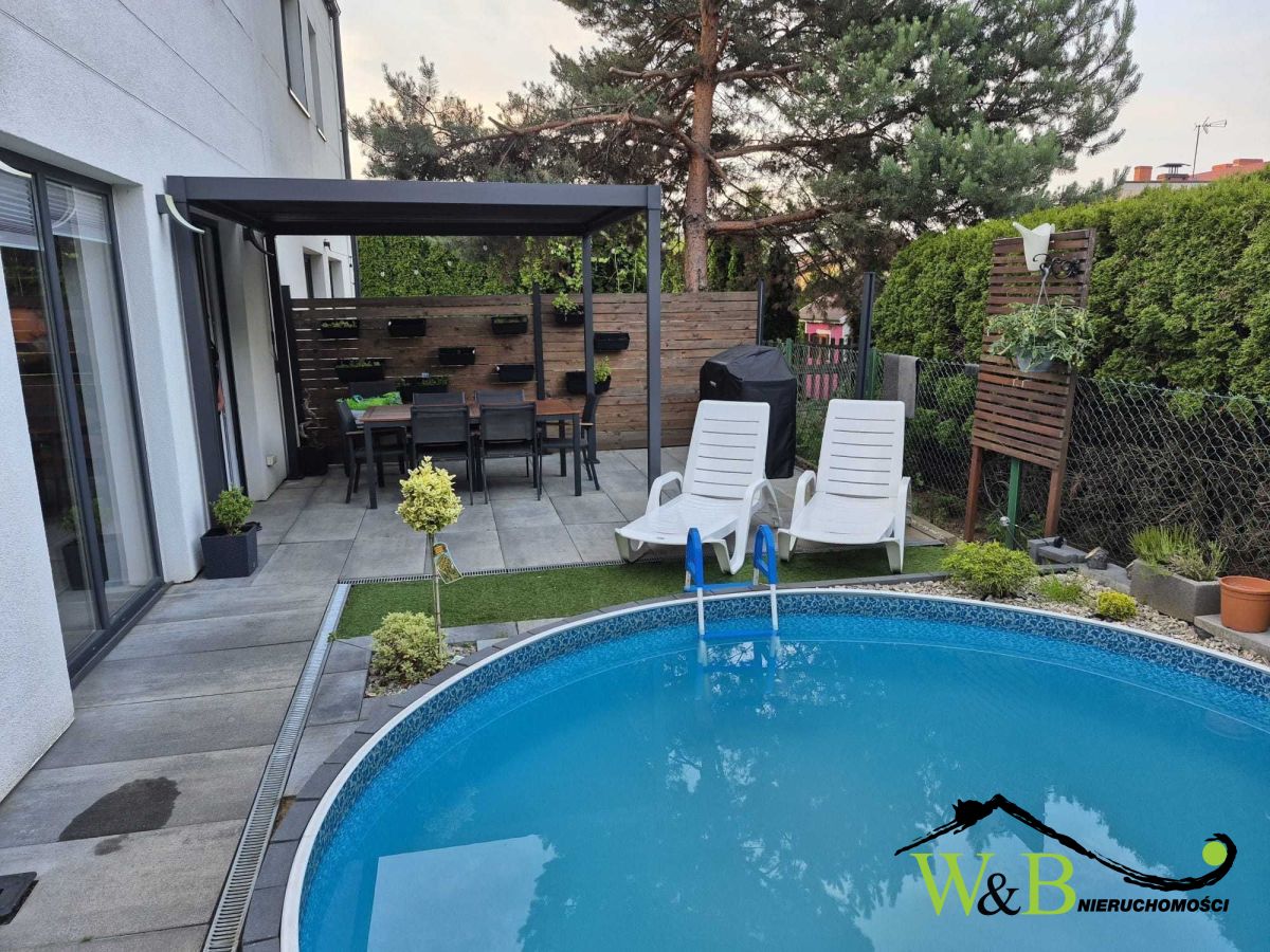 - z tyłu budynku duży taras oraz basen.