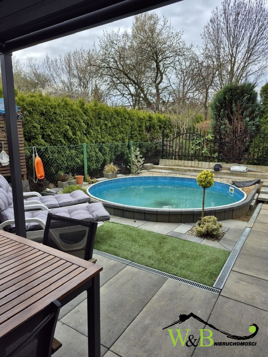 - z tyłu budynku duży taras oraz basen.