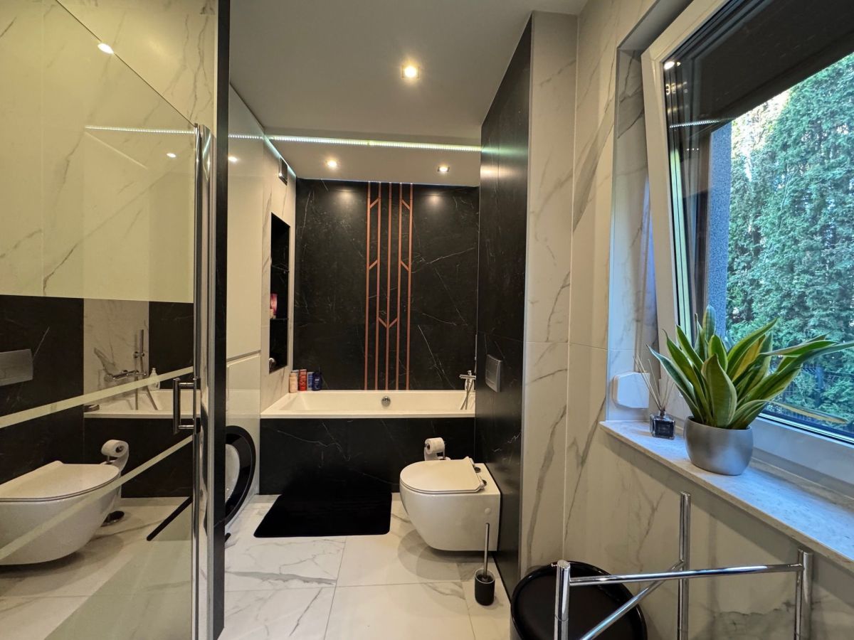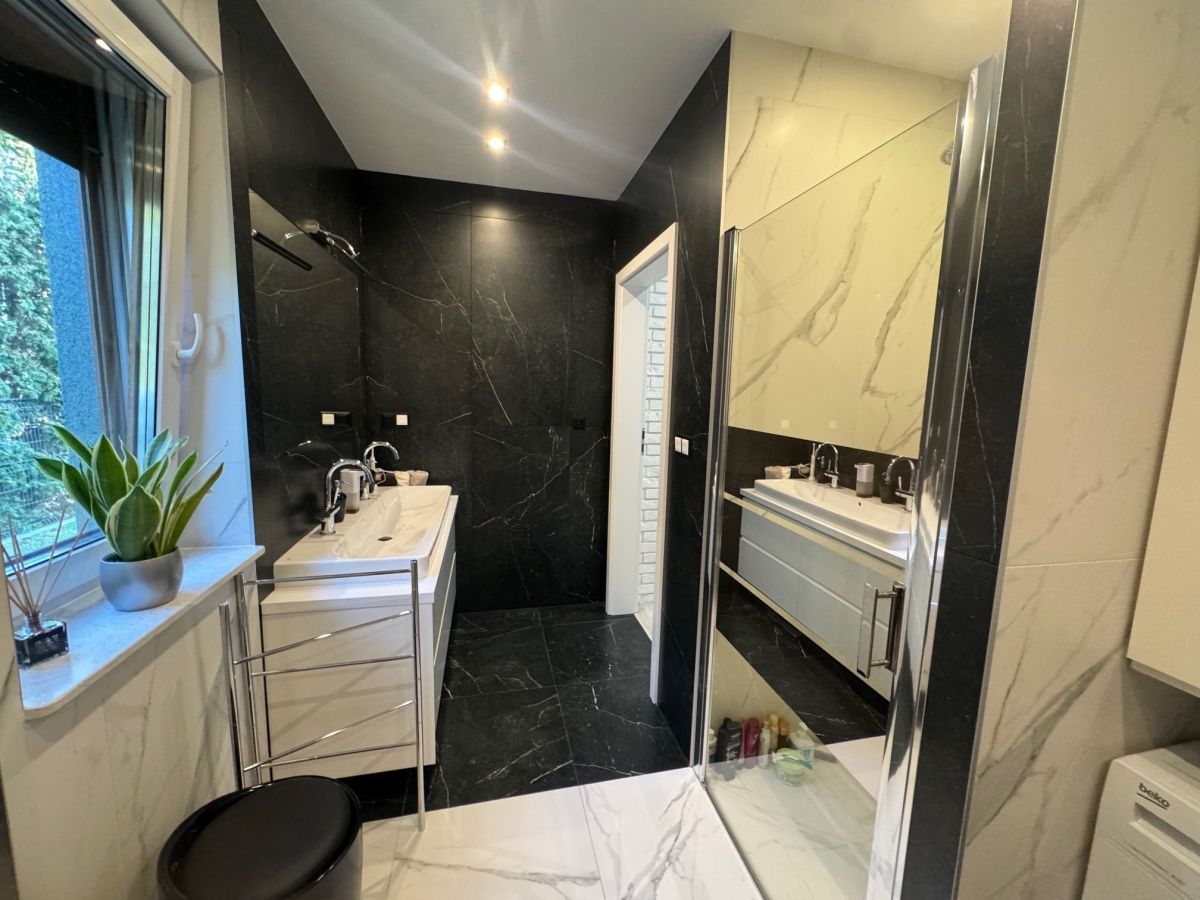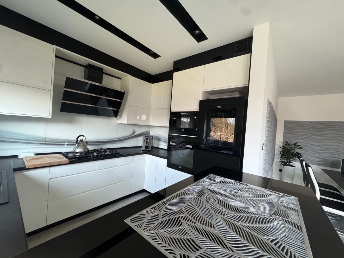 - składa się z dużego salonu połączonego z jadalnią, umeblowanej i wyposażonej kuchni , 2 sypialni, łazienki z wanną, prysznicem i wc, przestronnego korytarza, pomieszczenia gospodarczego pod schodami