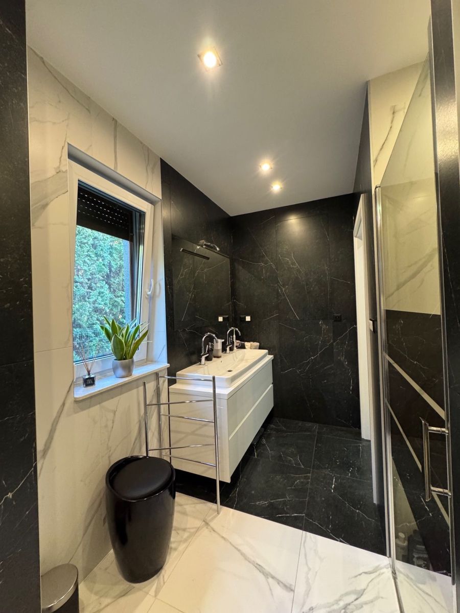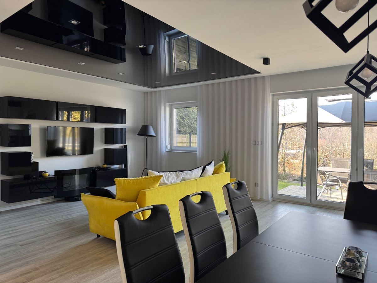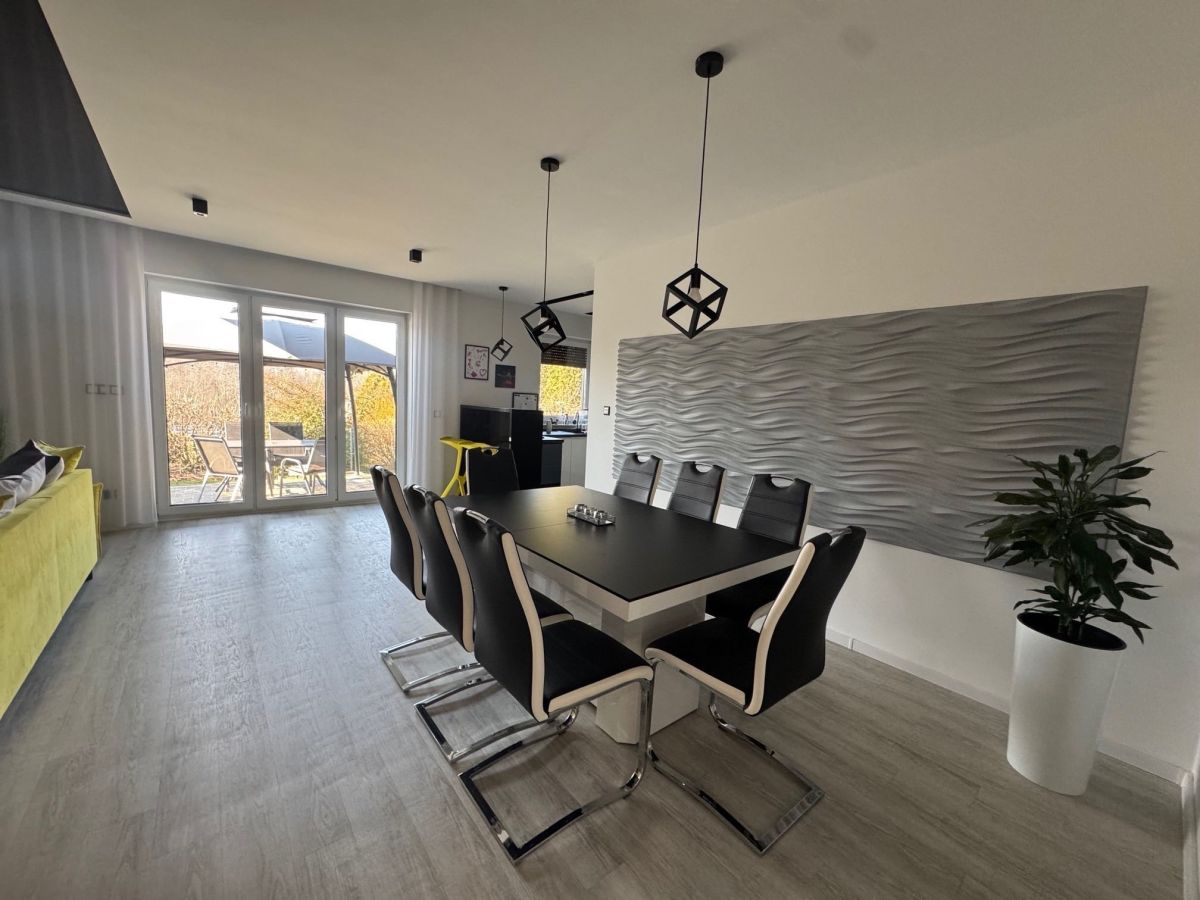 - składa się z dużego salonu połączonego z jadalnią, umeblowanej i wyposażonej kuchni , 2 sypialni, łazienki z wanną, prysznicem i wc, przestronnego korytarza, pomieszczenia gospodarczego pod schodami