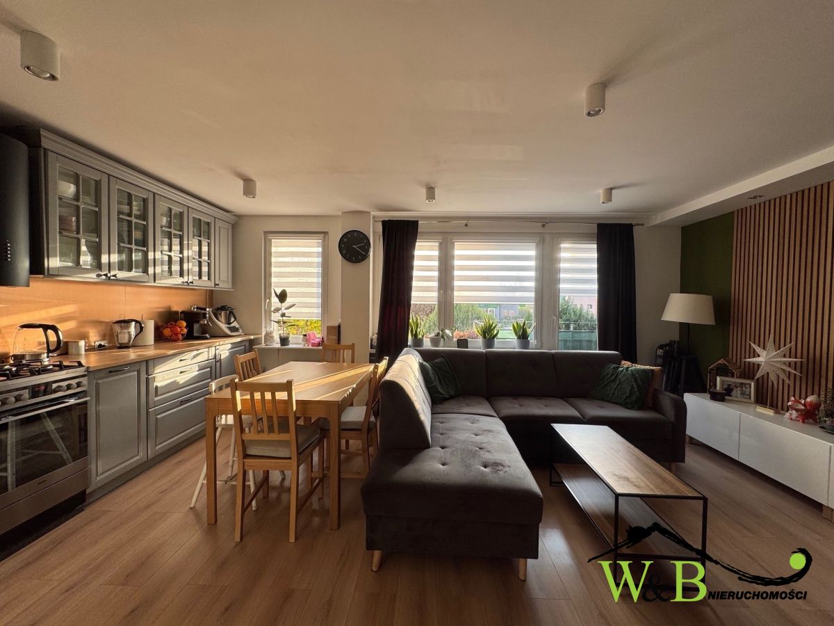 Mieszkania składa się z przestronnego przedpokoju, salonu połączonego z kuchnią i jadalnią, 2 sypialni, łazienki z wanną, odrębnego WC.